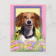 This Dog is surrounded by Easter Egg decorated Cookies and looking forward to helping you send Easter Greetings and to welcome in Spring. This design is available in over 70+ Dog Breeds. If you don't see your favourite Dog Breed OR if you would like YOUR OWN DOG in this design, just contact me. There is also a version of this design that you can upload your own photo into.