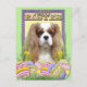 This Blenheim coloured Cavalier King Charles Spaniel Dog is surrounded by Easter Egg decorated Cookies and looking forward to helping you send Easter Greetings and to welcome in Spring. This design is available in over 70+ Dog Breeds. If you don't see your favourite Dog Breed OR if you would like YOUR OWN DOG in this design, just contact me. There is also a version of this design that you can upload your own photo into.