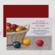 This invitation to the Easter brunch dinner party will certainly set the tone for your Easter celebration. Our beautiful Easter invitation features a wicker basket with colourful Easter eggs. Personalise with your own special text and use it for the party or event of your choice. Matching items available in our shop.