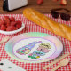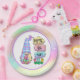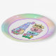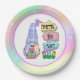 A Rainbow Pastel Paper Dinner Plate Of A Cute Gnome Looking Forward To The Easter Egg Hunt.