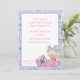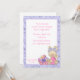 Cute Easter invitation with bunny and pink basket of Easter eggs and purple floral border. The invitation can be customised for Easter egg hunts, Easter breakfasts, etc. Invitations come with envelopes and your choice of paper.