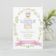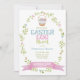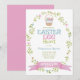 Easter Egg Hunt Invitation with pastel colours and pretty floral oval wreath and Easter egg basket.