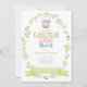 Easter Egg Hunt Invitation with pastel colours and pretty floral oval wreath and Easter egg basket.