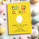 Funny Easter Egg Hunt invitation with white egg and yellow background.