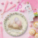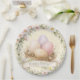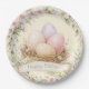 These Easter paper plates have a nest with Easter eggs adorned with flowers. Colors used include olive green, cream, blush pink, purple and brown.