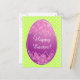 Easter egg postcards with white polka dots pattern. cheerful color combination, purple and green. Personalized message, Happy Easter. Cute design for kids egg hunt party invitation.