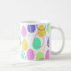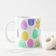 This mug has a Easter design of eggs in purple, yellow, green, blue, and pink scattered about with their outlines.