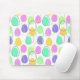This mouse pad has a Easter design of eggs in purple, yellow, green, blue, and pink scattered about with their outlines.