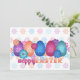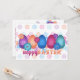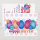 Happy Easter! It’s Easter Bunny time, and that means it’s time to hunt Easter Eggs! Celebrate the season in playful style with an Easter Eggs and Spring Flowers Invitation. Five multicolored pastel eggs in pretty shades of turquoise, purple, blue, orange and fuchsia sit in a row on a white background lined with cute spring flowers. A fun and flowery ‘Happy Easter’ greeting is at bottom. On the back is another spring scene and customisable text. This design is a happy, contemporary take on a traditional holiday. Don’t forget matching postage and envelope stickers!