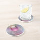 A pastel blue, lavender, and pink design with a translucent pink egg in a silver filigree setting, circled by a light silver oval frame set with four more smooth gems like colourful eggs.