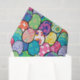 This tissue paper is covered with Easter eggs, each one outlined in black and decorated with delicate patterns such as paisley, polka dots, flowers, and more. Colours include pink, purple, blue, green peach, yellow and white.