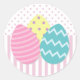 This design features three colourful Easter eggs on a pink polka dot and stripe background. Use these stickers with our "Happy Easter" cards available in the Holidays & Events section of our gallery.