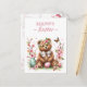 Easter postcard featuring a bear with cherry blossoms and Easter eggs. Customisable.