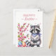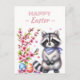Easter postcard featuring a racoon with cherry blossoms and Easter eggs. Customisable.