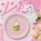 Easter Eggs & White Flower Pattern on Light Pink Paper Plate
