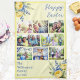 Brighten up the kitchen with this Easter themed towel, featuring eight of your favorite family photos. In primrose yellow with 'Happy Easter' greeting in blue script typography, the towel can be personalized with a name and 'established' year. Bunches of spring flowers in two corners complete the design. An ideal Easter gift for kitchen and home.