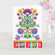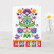 Vertical Happy Easter postcard with Folklore composition and two purple bunnies and Easter Eggs - Pysanki. Design inspired by polish folk-art from Lowicz region. The text inside is fully customisable. All you need is to sign at the bottom and unique Easter card is ready to make someone smile.