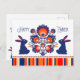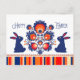 Happy Easter postcard with Folklore composition and a couple of blue bunnies with red ears. Design inspired by polish folk-art from Lowicz region. The text on back page is fully customisable. All you need is to sign at the bottom and unique post card is ready to make someone smile.