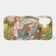 Sweet young Victorian girl and boy on an antique postcard wishing Easter Greetings. With Easter egg, rooster, chicken and chicks! I have custom restored the image.