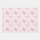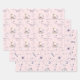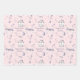 Cute Easter personalised wrapping paper sheets for girls with a cute bunny girl, flowers, houses and Easter eggs in soft purple shades all on the pink background. Personalised text on two of them and one is floral pattern. Easily personalise the text. - Kate Eden Art