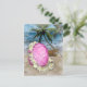 Big Easter-egg painted with a Hawaiian design and decorated with a Lei, with a beach scene in the background.