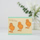 A vintage / antique Happy Easter postcard with three fuzzy yellow felt chicks all in a row. Background in beige. Happy Easter!