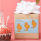 A vintage / antique Happy Easter postcard with three fuzzy yellow felt chicks all in a row. Background in blue. Happy Easter!