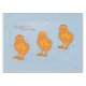A vintage / antique Happy Easter postcard with three fuzzy yellow felt chicks all in a row. Background in blue. Happy Easter!