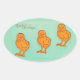 Easter Greetings Chicks Green Oval Sticker