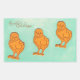 A vintage / antique Happy Easter postcard with three fuzzy yellow felt chicks all in a row. Background in green. Happy Easter!