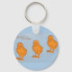 A vintage / antique Happy Easter postcard with three fuzzy yellow felt chicks all in a row. Background in blue. Happy Easter!