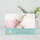 An adorable photo birth announcement perfect for an Easter-time birth featuring a white bunny hatching from a decorated Easter egg. The teal background has a tiny heart pattern. (<a href='https://www.freepik.com/free-vector/set-of-cute-easter-cards_766176.htm'>Designed by Freepik</a>). <br/><br/>The card is easy to customise with your wording, font, font colour and choice of six paper types.<br/><br/>Not exactly what you're looking for? All our products can be custom designed to meet your needs at no extra charge.<br/><br/>Simply contact us at heartfelthelper@gmail.com<br/><br/>Coordinating products available: