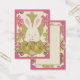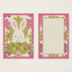 Easter Bunny peeking out from dot prints with floral print background.Easter gift tag.