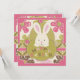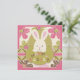 3D look Easter bunny with polka dots and floral prints Easter hunt invitation card.