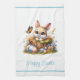 This kitchen towel is shown in white with a festive Easter bunny print.