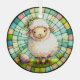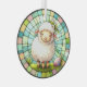 A beautiful stained glass Easter ornament of a cute lamb amongst the pretty colours.