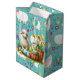 A Teal Medium Gift Bag Designed With White Lambs, Rabbits For Easter Gifts