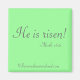 "He is risen!" Mark 16:6 Agrainofmustardseed.com Easter Scripture Magnets 2 x 2 Our Easter Scripture Embedded Magnets are great for home, office, school, or church. Our Easter magnets are not just for Easter but can be used any time of year! Give these magnets as gifts at your next class or family reunion, special event, or party! The possibilities are endless. Our Easter products are like no other. What better way to celebrate the resurrection of our Lord than with messages focusing on His resurrection? No matter where you go, take the word with you. We guarantee that our Christian products will fill the area with the life of Christ! We are not ashamed of the Gospel, are you? Pick up some products for yourself or friends and loved ones.
