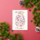 Botanical illustrations of lovely spring flowers in fresh pink, purple and blue colours shaped into an easter egg! Includes wildflowers with a gold foil Happy Easter greeting. Customise with your own text to personalise your message to send friends & family Happy Easter greetings!