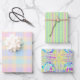 A versatile, decorative set of gift wrap paper with pastels as the primary color scheme - a collection featuring coordinated patterns and designs created to work together. The focus is on clean, balanced visuals that are easy to mix and match for all your gift wrap needs. Works well for Easter and spring-time occasions, including birthdays. Good for all ages. Suitable for children, teens, and adults who enjoy birthday celebrations, birthday celebrations and other special spring-time occasions.