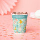 Easter pattern with eggs, bunny, chick, flowers paper cups