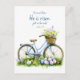 Stylish vintage bicycle featuring a basket brimming with wildflowers. Accompanied by colourful Easter eggs nestled in the grass, evoking a sense of seasonal celebration and rustic charm.