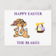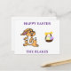 Easter postcard with rabbit, easter basket & personalised with families name.