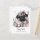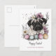 Easter pug rustic botanical floral holiday postcard