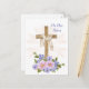 Easter Christian Holiday Card. Empty cross "He Has Risen" with flowers.