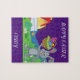 Colorful Easter bunny, basket, & house puzzle with personalized name for kids.