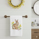 Enhance your bathroom with this charming hand towel, perfect for Easter and the spring season! It features a delightful watercolor illustration of a rabbit alongside vibrant Easter eggs, adding a touch of springtime cheer to your space.