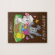 Colourful Easter rabbit, chick & lamb puzzle with personalised name.