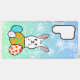 Cute egg-shaped rabbit standing on top of Easter eggs to celebrate Easter