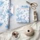 Elevate your Easter gifting with our stunning new wrapping paper, featuring a charming Easter rabbit toile de Jouy pattern in blue on a crisp white background.